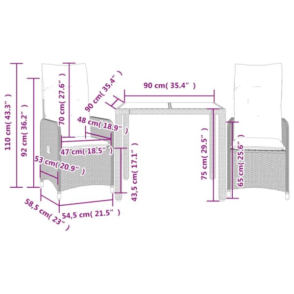 - Dimensioni quando reclinata: 54,5 x 81,5 x 83 cm (L x P x A)