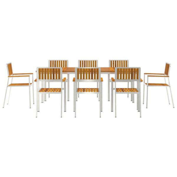 Questo set da pranzo per giardino include un tavolo rettangolare e 8 sedie abbinate in legno massello di acacia. Perfetto per divertirsi all’aperto, crea un’atmosfera accogliente per familiari e amici che possono condividere pasti nel tuo giardino o sul patio.