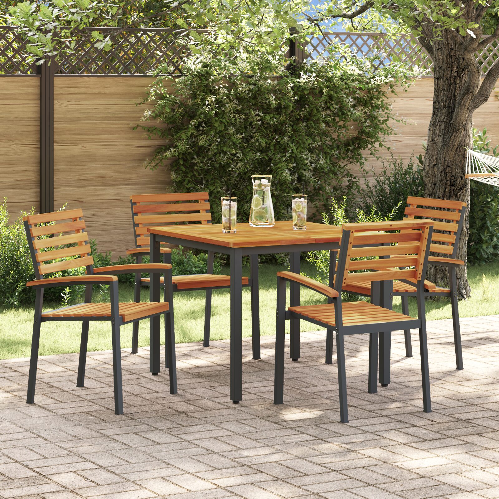 - Resistente e Durevole: Realizzato in legno massello di acacia e metallo, questo set affronta le diverse condizioni atmosferiche, assicurandoti durata e bellezza nel tempo.