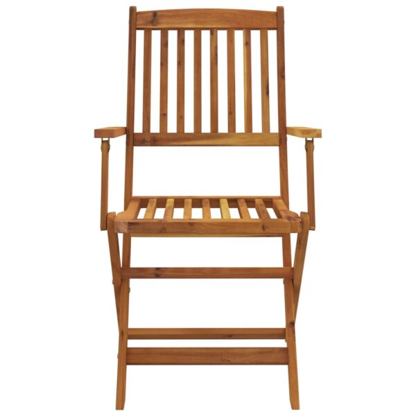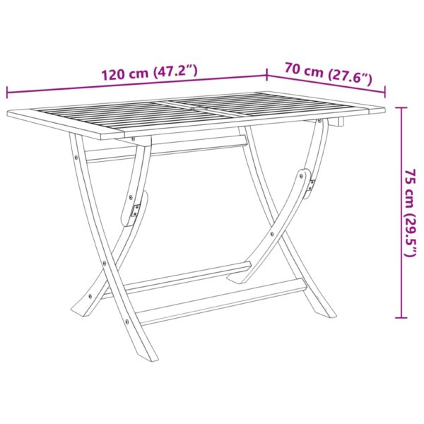 Il set di mobili da pranzo per esterni è realizzato in massello di acacia, un legno duro tropicale, resistente agli agenti atmosferici e durevole. La superficie, con finitura oliata, è facile da pulire con un panno umido. Il tavolo e le sedie da giardino inoltre, possono essere richiuse per risparmiare spazio quando non vengono utilizzate.