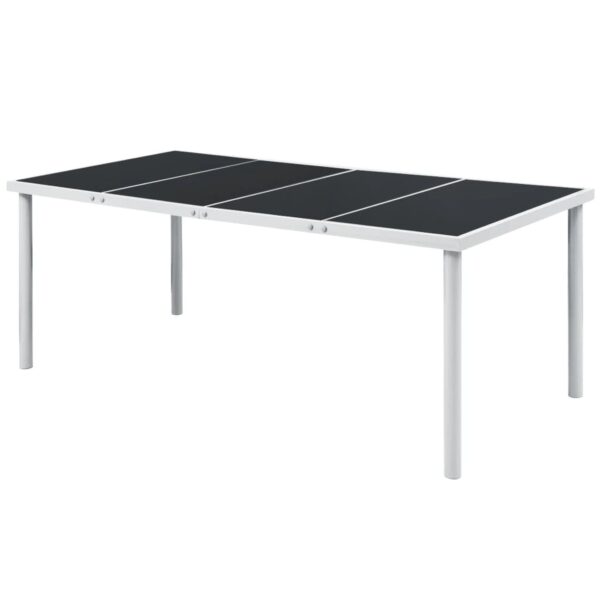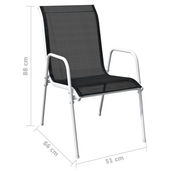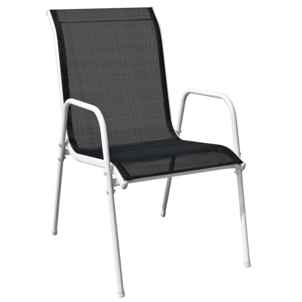 Questo set di mobili da pranzo da giardino presenta una struttura in acciaio verniciato a polvere che rende il tavolo e le sedie stabili e durevoli. Le comode poltroncine da pranzo sono rivestite in tessuto textilene, resistente e facile da pulire. Le sedie sono anche impilabili per risparmiare spazio quando non vengono usate.