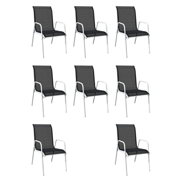 Questo set di mobili da pranzo per esterni contiene 1 tavolo con ripiano in vetro ed 8 sedie in textilene. Con un design elegante e un resistente telaio in acciaio, il nostro set da pranzo è la scelta perfetta per il vostro spazio di vita all’aperto. La semplice eleganza di questo set di mobili da pranzo, renderà speciali le cene di tutti i giorni.