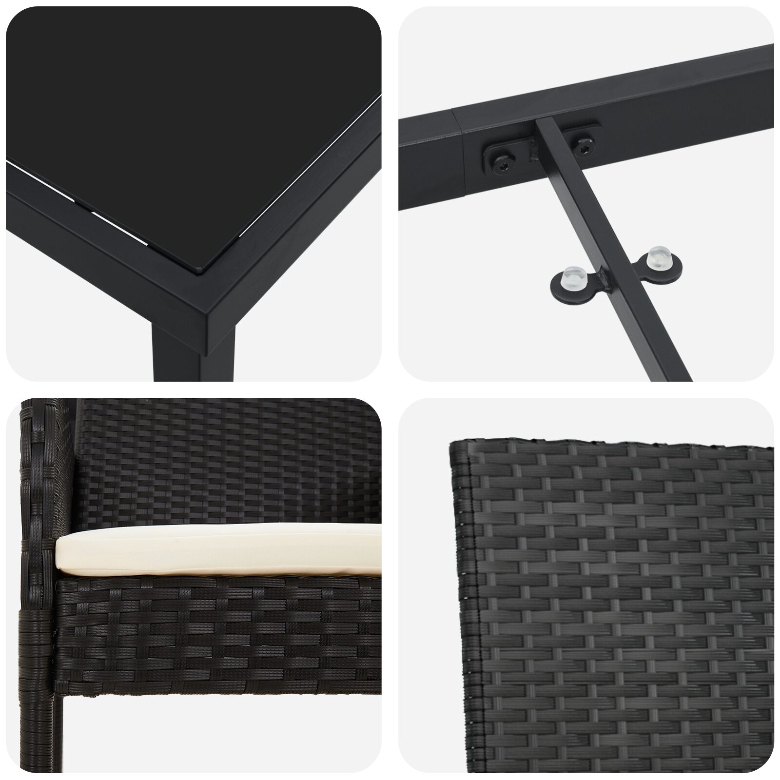 - Comfort super: I cuscini comodi invitano te e i tuoi amici a sedervi e rilassarvi il più a lungo possibile. I cuscini crema si abbinano bene al rattan nero, aggiungendo un bel tocco.