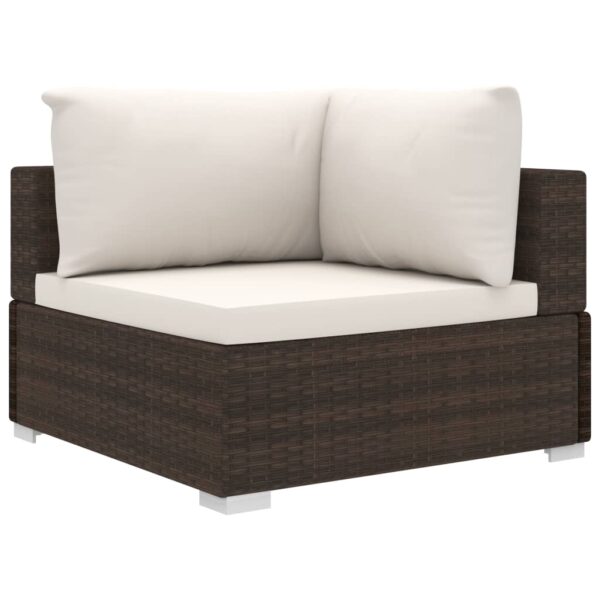 La consegna comprende: 3 divani angolari, 5 divani centrali, 1 poggiapiedi, 1 tavolino da caffè, 10 cuscini da seduta e 12 cuscini per lo schienale. Nota: Consigliamo di coprire il set in caso di pioggia, neve e gelo.