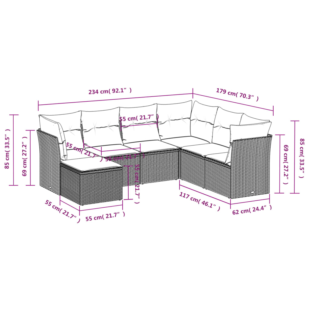 Set Divani da Giardino 7 pz con Cuscini Grigio in Polyrattan