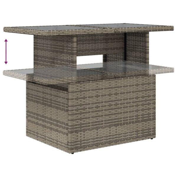 - Piano del tavolo regolabile: Il piano del tavolo può essere sollevato per rende il tavolo da esterno più alto, trasformandolo in un tavolino o in un tavolo da pranzo. È perfetto per accogliere gli ospiti o consumare i pasti all’aperto.