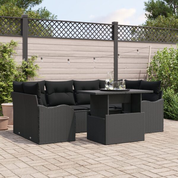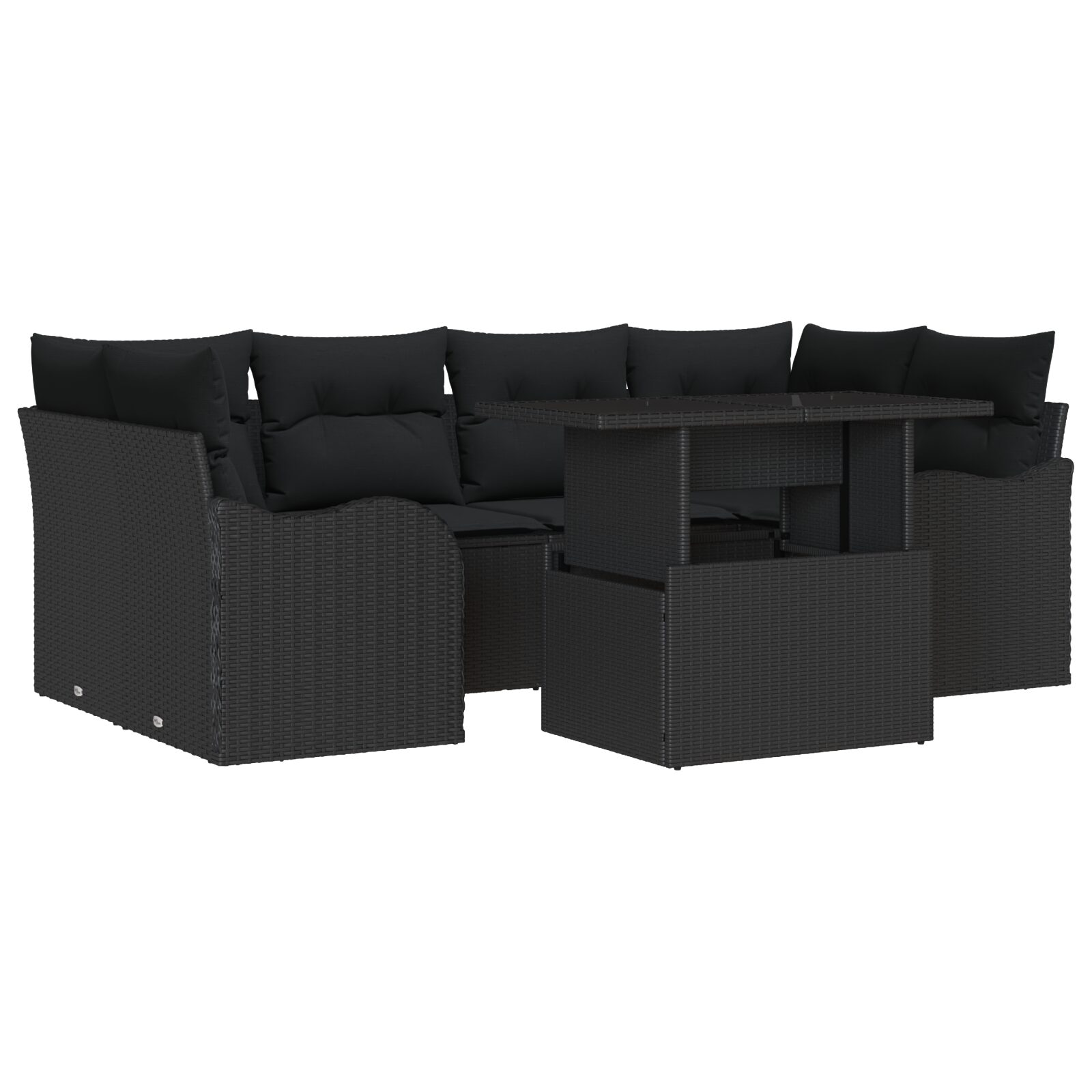 Questo set divano da giardino rende il tuo spazio esterno alla moda, unendo comfort e stile. Con il suo design modulare, si adatta facilmente a ogni patio o balcone, rendendolo un posto accogliente dove rilassarsi o ricevere amici. L’elegante colore nero fa un bel colpo d’occhio, e il rattan intrecciato a mano aggiunge un tocco di classe, invitandoti a rilassarti all’aria fresca.