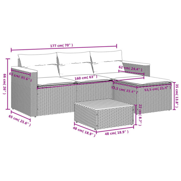 Set Divano Giardino 5 pz con Cuscini Grigio Polyrattan Acacia