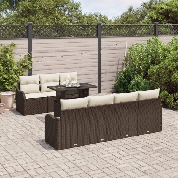 Questo set divano giardino modulare da 8 pezzi è super stiloso e utile, perfetto per il relax all’aperto. La bella combinazione di colori marrone e panna gli dà un aspetto senza tempo, e la costruzione solida dimostra una grande qualità artigianale, ottima per riunioni o momenti di relax nel tuo giardino o patio.