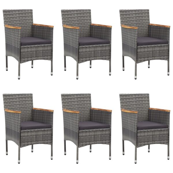 Il tavolo da pranzo è realizzato in legno massello di acacia ed è robusto e resistente. La superficie ad olio lo rende adatto per l’uso in ambienti esterni. Caratterizzate da un telaio in acciaio rivestito in rattan PE resistente agli agenti atmosferici, le sedie da pranzo sono robuste e facili da pulire. I braccioli, splendidamente decorati, in legno massello di acacia aggiungono un tocco di fascino rustico. I cuscini dalla spessa imbottitura forniscono ulteriore comodità.