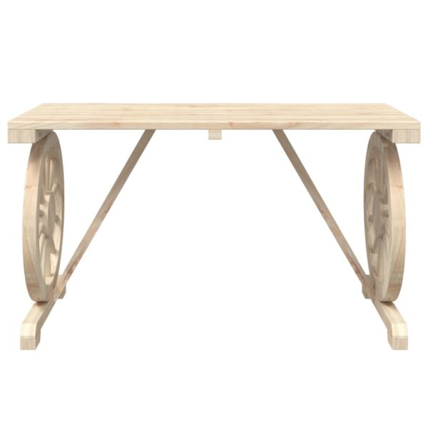 - Design accattivante: Il tavolo da esterno presenta un design a forma di ruota del carro che offre un’esposizione accattivante da ogni angolazione.