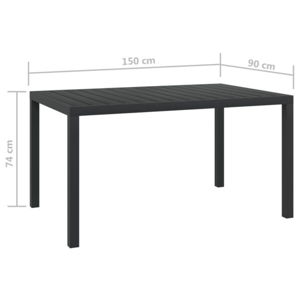 Il ripiano del tavolo è realizzato in legno composito (WPC) di alta qualità, ciò lo rende resistente agli agenti atmosferici e durevole. Il robusto telaio in alluminio verniciato a polvere rende il tavolo durevole e resistente. Il montaggio è facile.